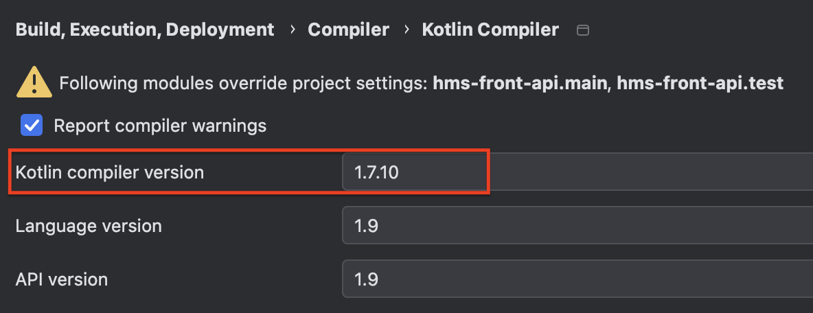 Intellij 버전이 높아짐에 따라 Kotlin 버전에 영향이 있었고 과거에 만들어진 프로젝트의 Kotlin Compiler 버전이 낮아 발생을 한것 입니다.